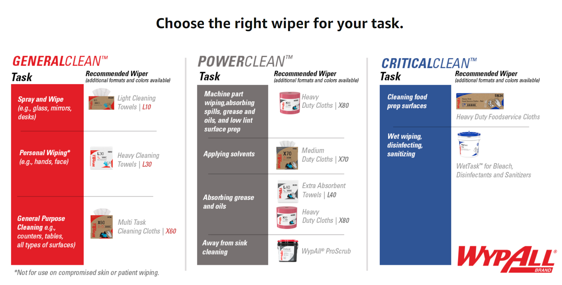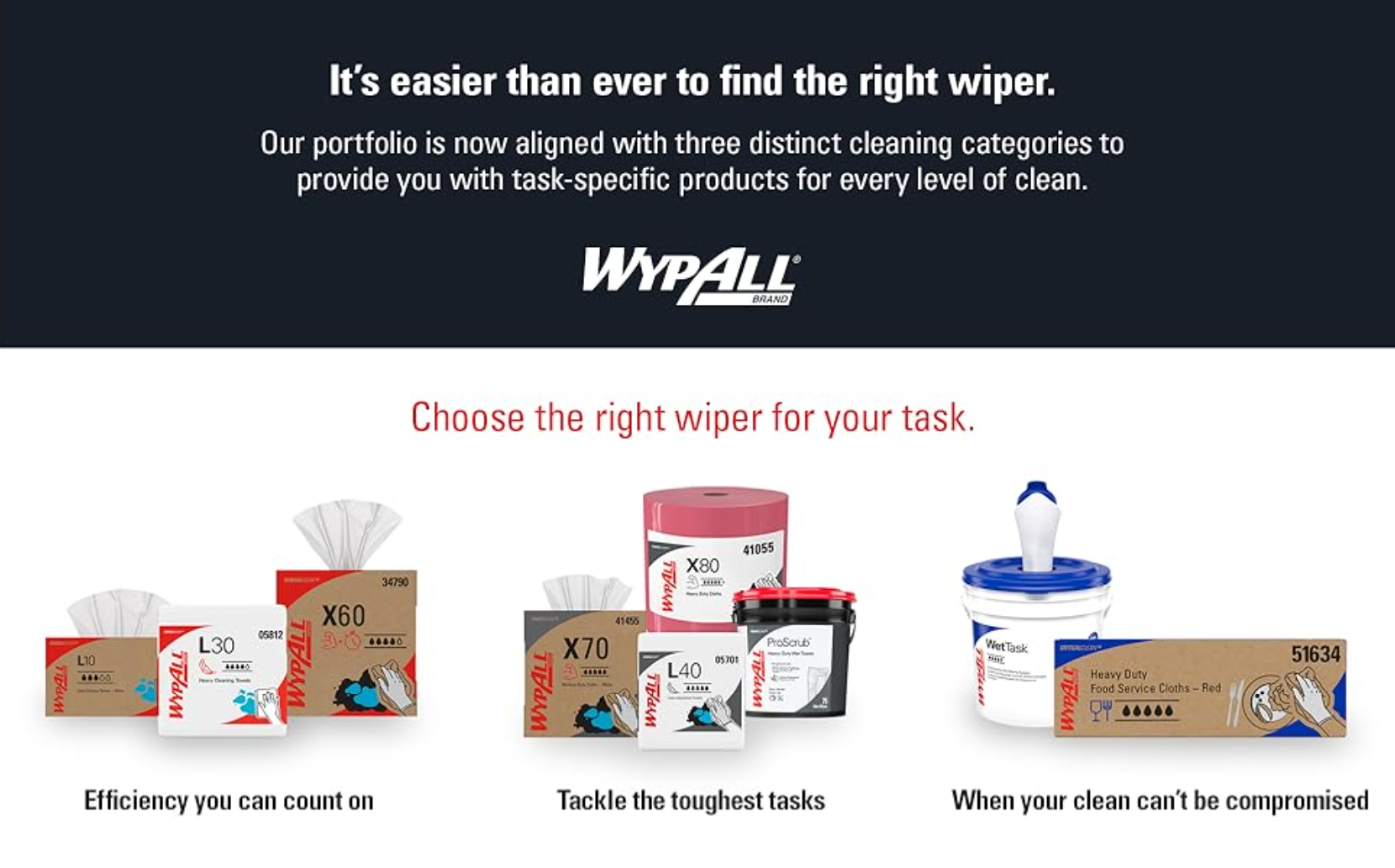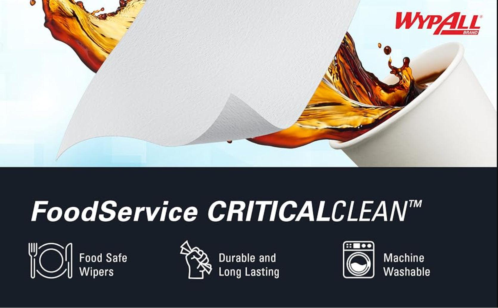 Hygienic alternative to laundered towels or cloth rags. WypAll Foodservice cloths absorb 25% faster than leading competitive disposable wipers. They’re made with high-tech Hydroknit fast-absorbing material and suitable for all common cleaning and sanitizing tasks in foodservice industries.