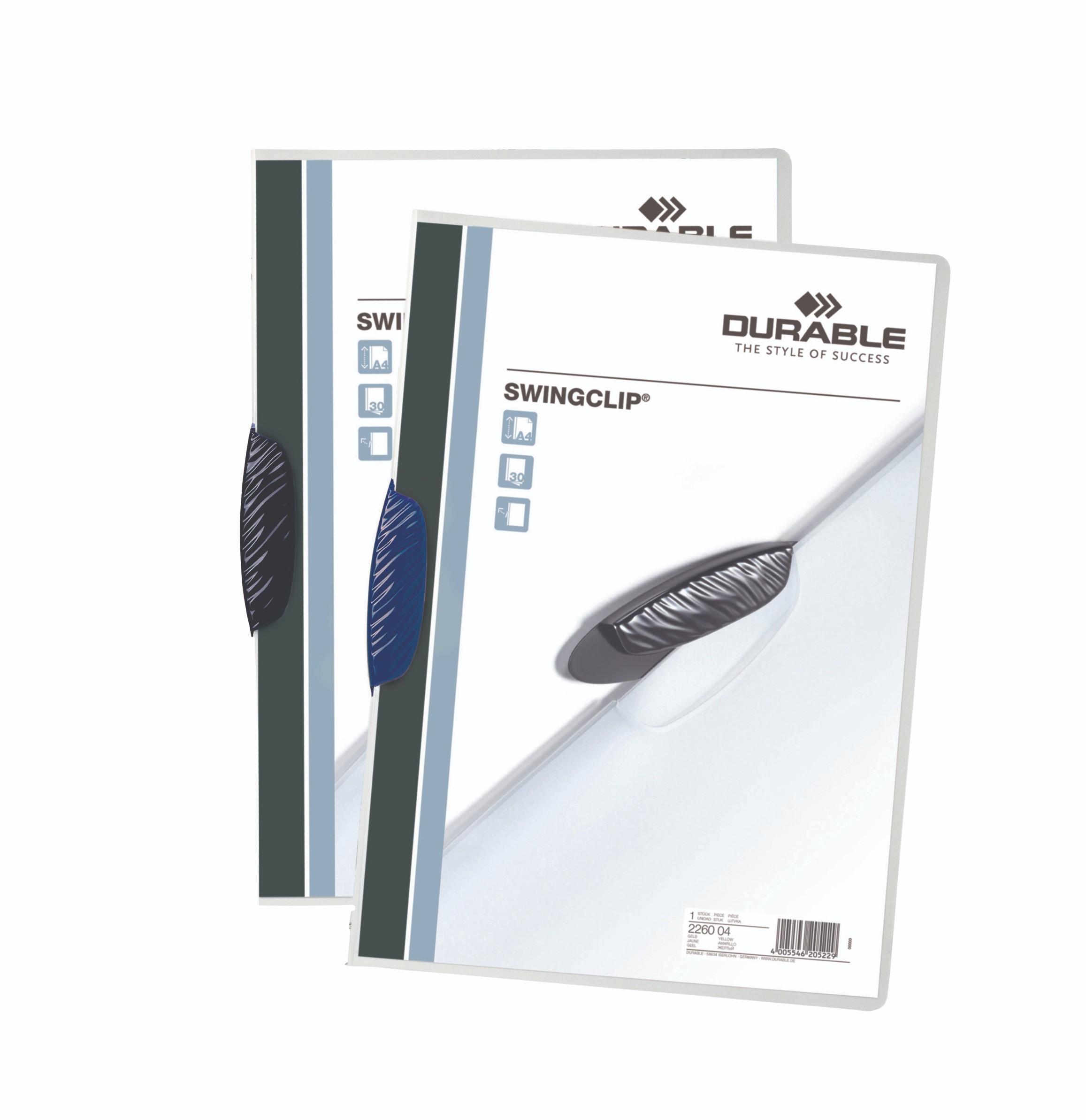 The SWINGCLIP report cover features a stylish molded clip that swings effortlessly to the side for fast addition or removal of pages. This transparent wrap-around clear report cover gives a professional appearance to documents and holds up to 30 sheets, without no need to punch holes. It is made of thick polypropylene for durability and maximum protection of contents. Each report cover opens flat for easy viewing of the top sheet and the clip operates smoothly and will not damage paper edges.