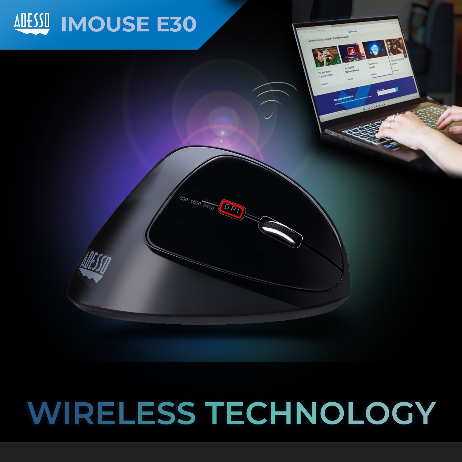 The wrist-friendly contour of the Adesso vertical mice allows you to hold your hand in a neutral “handshake position”, minimizing your forearm muscles from twisting and the possible development of Carpal Tunnel Syndrome. Normally, your forearm muscles are twisted from sitting flat on the supporting surface when using a regular mouse. This “flat position” causes strains on your muscles and leads to wrist pains. This is where the Adesso Vertical Mice become helpful and provide alleviation.