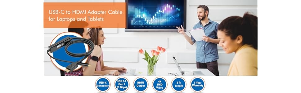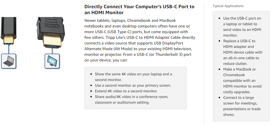 This adapter cable supports USB DisplayPort Alternate Mode for transmitting digital audio and ultra high-definition video: