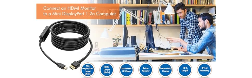 This active adapter cable helps you save money by making your current HDMI monitor compatible with a Mini DisplayPort-equipped computer. High-quality connectors provide maximum conductivity to ensure a clean, consistent video signal.