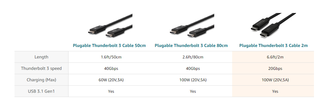 The Plugable TBT3-20G2M cable is foremost designed as a Thunderbolt 3 cable, but it is also a universal USB-C cable for use with USB-C computers, phones, tablets, docking stations, accessories, and more. It supports all USB-C cable features, including USB 3.0 and USB 2.0 data lines, wire gauge supporting up to 5A charging via the USB-IF PD (Power Delivery) standard 100W max (5V-20V), and support for reporting its capabilities as an electronically marked cable.