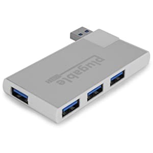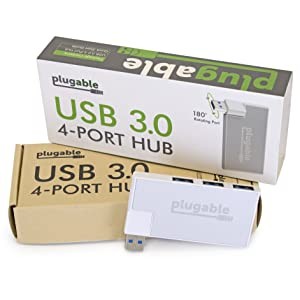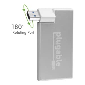 The Plugable Bus-Powered 4-Port Rotating USB 3.0 Hub (USB3-HUB4R) is a portable USB 3.0 travel hub that enables connecting four low-power USB 3.0 devices on a single USB 3.0 port. The hub features a unique 180 degree rotating USB connector to allow convenient placement on a variety of host computers like laptops, tablets, or 2-in-1s. As a bus-powered hub, it's great for USB devices with low power draw like wired keyboards and mice, flash drives, and card readers.