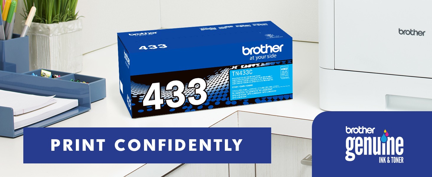 The TN433C cyan toner cartridge provides professional laser print quality you can consistently rely on for up to 4,000 pages(1).