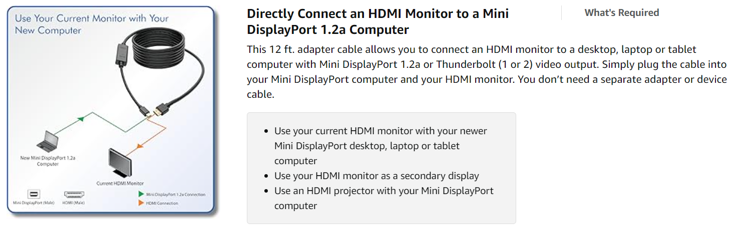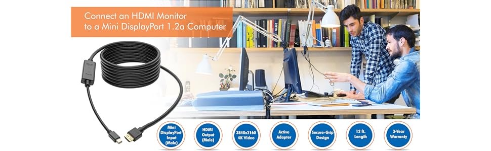 This active adapter cable helps you save money by making your current HDMI monitor compatible with a Mini DisplayPort-equipped computer. High-quality connectors provide maximum conductivity to ensure a clean, consistent video signal.