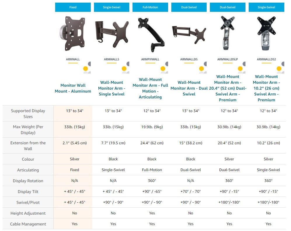 The monitor wall mount helps you save space on your desk or table surface, by letting you securely wall-mount a computer monitor or LED / LCD TV from 13” to 27” (330 to 686 mm) in size and up to 33 lb. (15kg) in weight.
