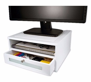 The Victor Pure White Collection™ bringsa fresh perspective to desk accessories by offering functional solutions withappealing design elements. The W1130 Printer Stand provides two shelves to fitpaper reams or folders. The two drawers can be placed in any of the fourlocations providing flexible storage for printer supplies. Rear access spacehelps manage cables and allows a flush positioning against the wall. Featuressturdy 18.9 lb. wood construction with a durable double coated matte whitefinish. Brushed metal handles, faux leather top and frosted glass windows add atouch of class. Non-slip rubber feet reduce movement and protect your worksurface from scratches and scuffs. Large 21.75" x 15.25" x 7.75"design holds desktop printers, monitors, fax, postage, or other officemachines. Perfect for use either at home or in the office. 90 day manufacturerwarranty.