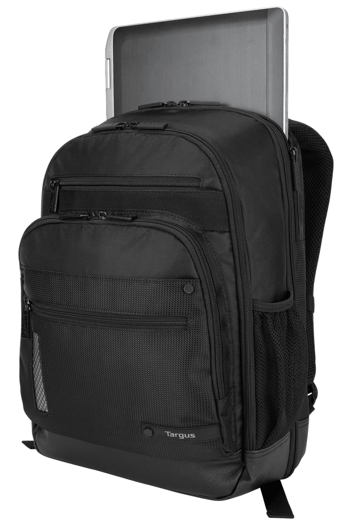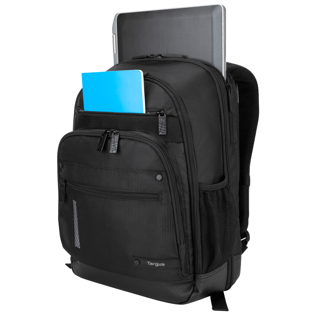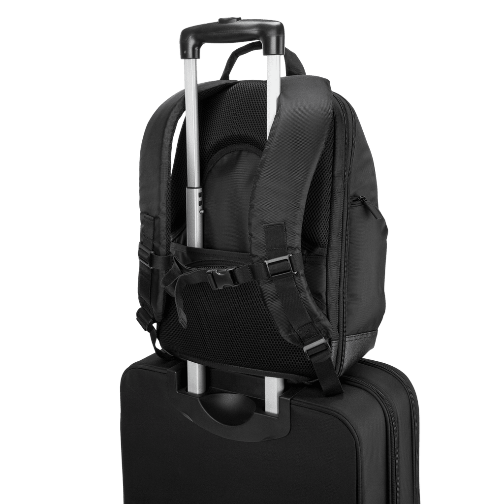 The Targus 14” Revolution Checkpoint-Friendly Laptop Backpack features the SafePort® Sling, which suspends the laptop to keep it protected in case of drops. For quick trips through airport screenings, the patented checkpoint-friendly design unzips to lay flat so that you don’t have to remove your laptop. A workstation and pockets organize your files and office supplies.