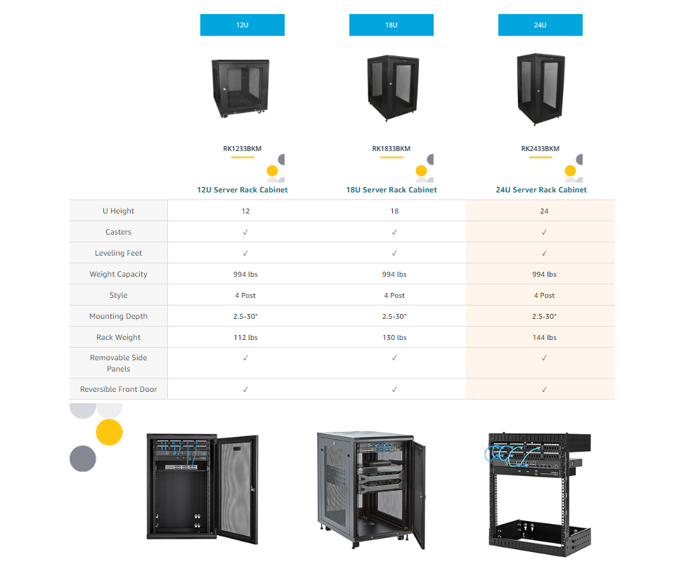 StarTech.com 24U 19" Server Rack Cabinet 4 Post Adjustable Depth 2-30" w/Casters/Cable Management/1U Shelf, Locking Doors and Side Panels