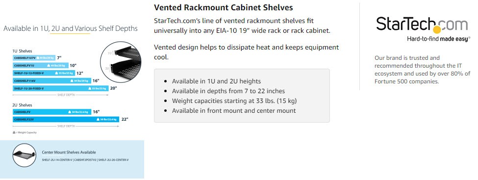 Made from 2mm thick SPCC cold-rolled steel, our family of universal vented rack shelves can be installed in any standard 19” server rack.