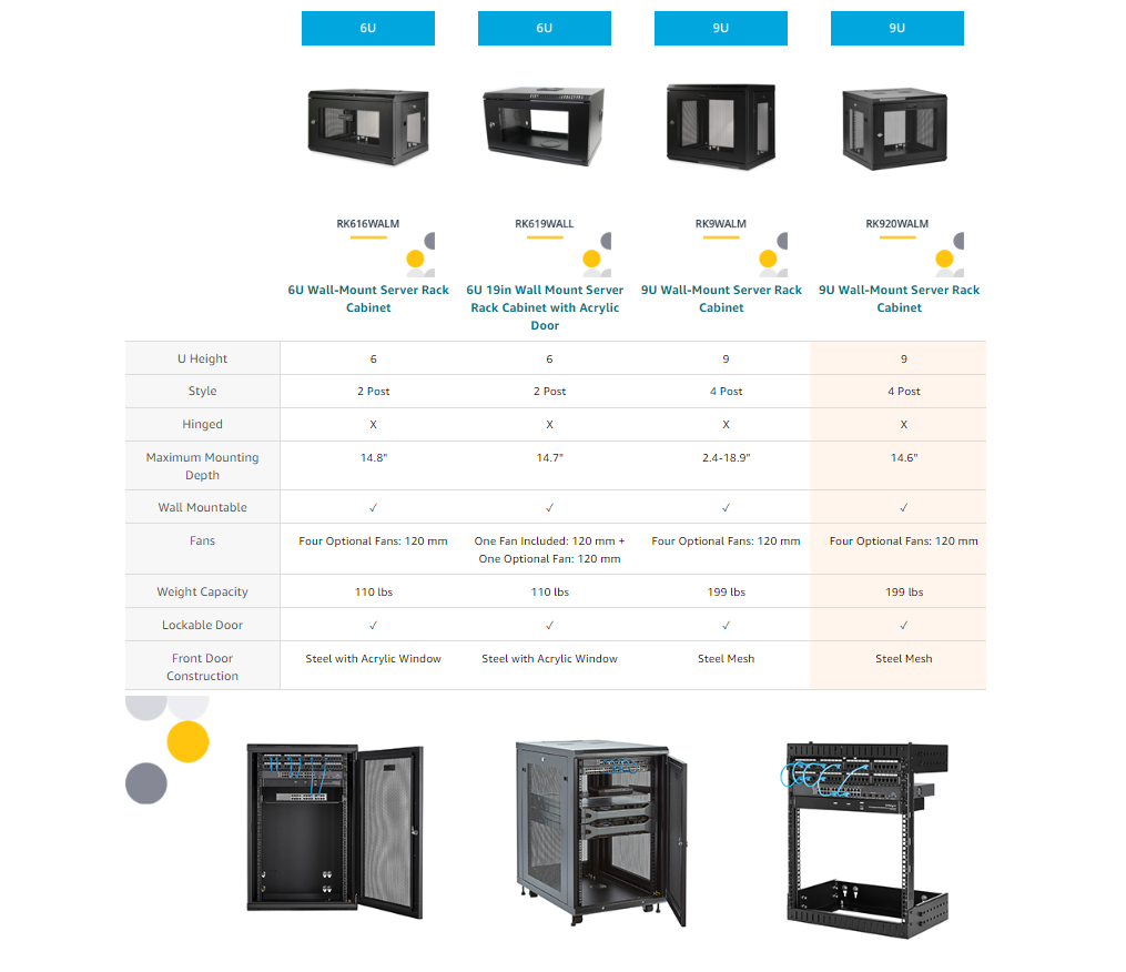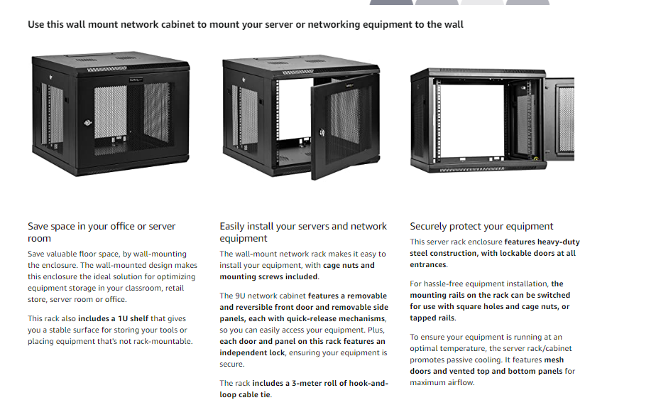 StarTech.com 9U Wallmount Server Rack Cabinet - Wallmount Network Cabinet - Up to 19 in. Deep~