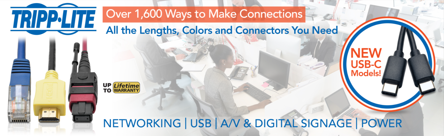Founded in 1922 in Chicago, Illinois, Tripp Lite is a leading manufacturer of products to power, connect and protect your equipment. With a large selection of connectivity products, Tripp Lite has everything from USB hubs and reversible USB cables to fiber-optic cables and over Cat5e/Cat6 signal extenders. Whether you need to connect high-speed networks to switches, routers and servers in your data center, or send high-resolution video signals to displays and digital signs, Tripp Lite has the complete solution. Plus, before and after your purchase, our Chicago-based, in-house technical support specialists are available to assist you by phone, email and live chat. With over 90 years of quality products and service, Tripp Lite is a brand you can trust.