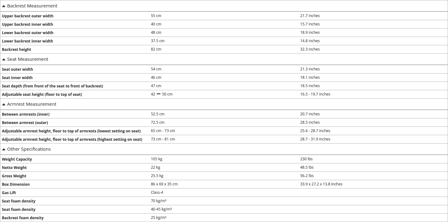 Gaming Chair Dimensions