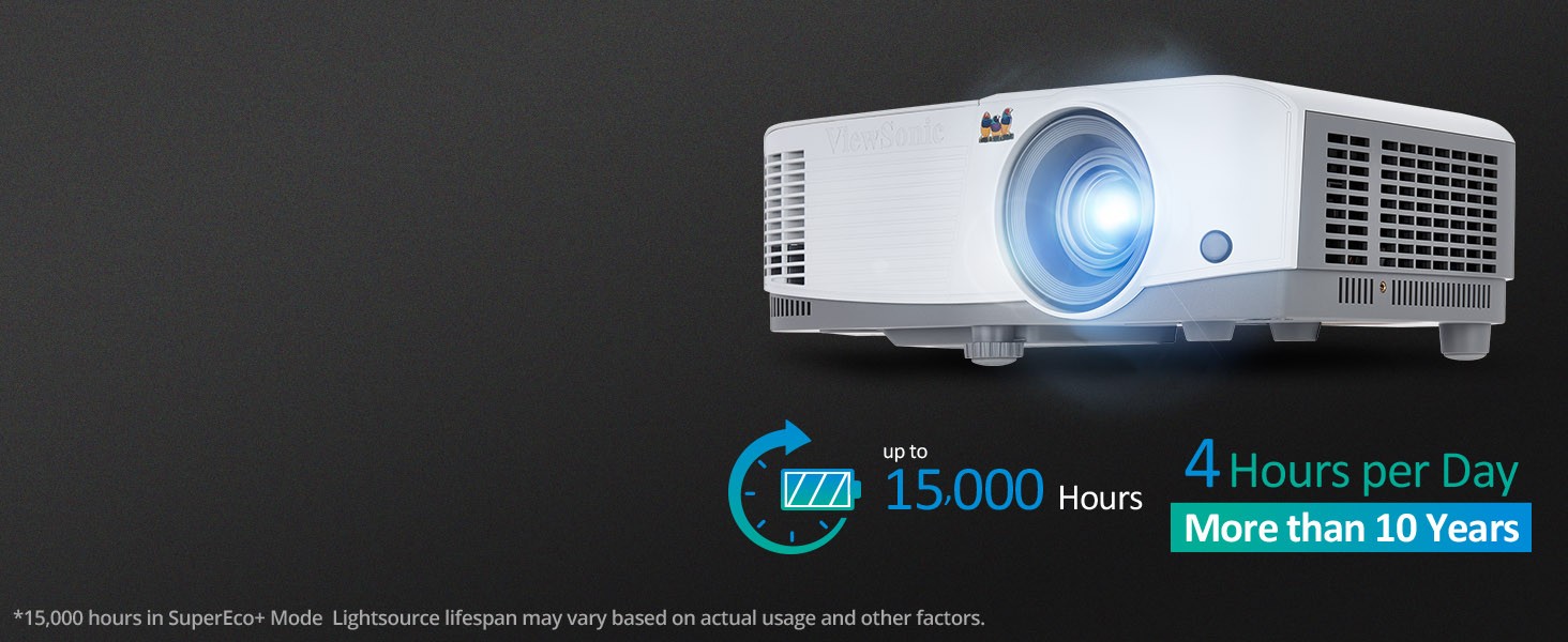 The ViewSonic® PA503W price-performance projector features 4,000 lumens, native WXGA 1280x800 resolution, and an intuitive, user-friendly design. Exclusive SuperColor™ technology offers a wider color range for lifelike image projection. The PA503W also features extensive connectivity including HDMI, 2 x VGA in, Composite Video, 1 x VGA output, and Audio in/out. An energy-saving SuperEco™ feature reduces power consumption by up to 70%, and extends the lamp life by up to 15,000 hours*. With advanced audiovisual features, flexible connectivity options, and an affordable price, the PA503W is ideal for use in education and small business environments.