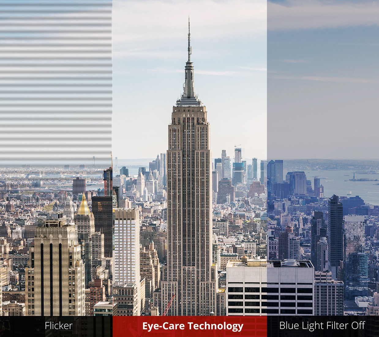 Flicker-Free technology and a Blue Light Filter help to eliminate eyestrain from extended viewing periods.
