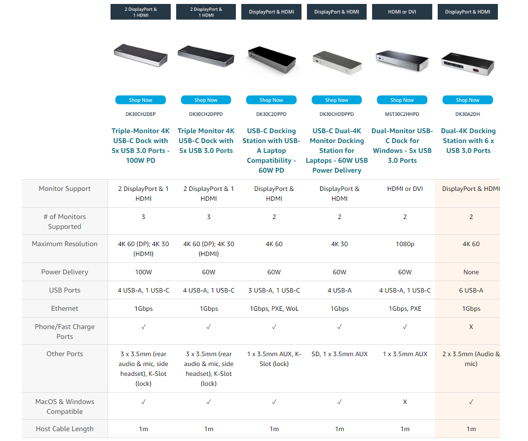 The USB 3.0 docking station supports USB-C and USB-A enabled Mac and Windows laptops.