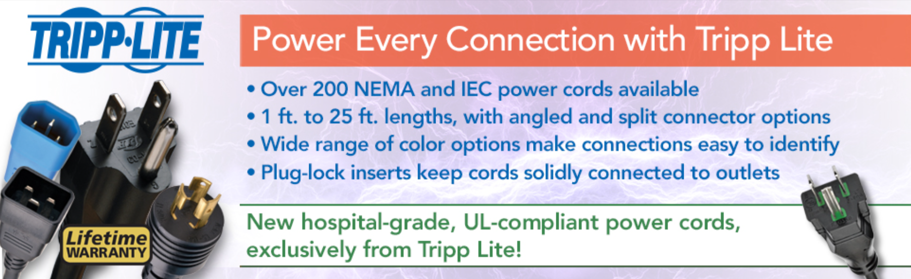 Founded in 1922 in Chicago, Illinois, Tripp Lite is a leading manufacturer of products to power, protect, manage, house, cool, connect and mount your equipment. With a large selection of connectivity products, Tripp Lite has everything from USB hubs and reversible USB cables to fiber-optic cables and over Cat5e/Cat6 signal extenders. Whether you need to connect high-speed networks to switches, routers and servers in your data center, or send high-resolution video signals to displays and digital signs, Tripp Lite has the complete solution. Plus, before and after your purchase, our Chicago-based, in-house technical support specialists are available to assist you by phone, email and live chat. With over 95 years of quality products and service, Tripp Lite is a brand you can trust.