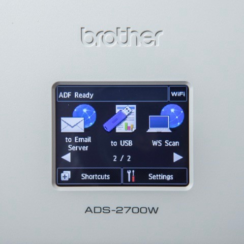 The ADS-2700W features one-touch programmable keys, Auto-Start Scan for automatic scanning and enhanced security features accessible through its 2.8” color touchscreen LCD and easy-to-use interface.