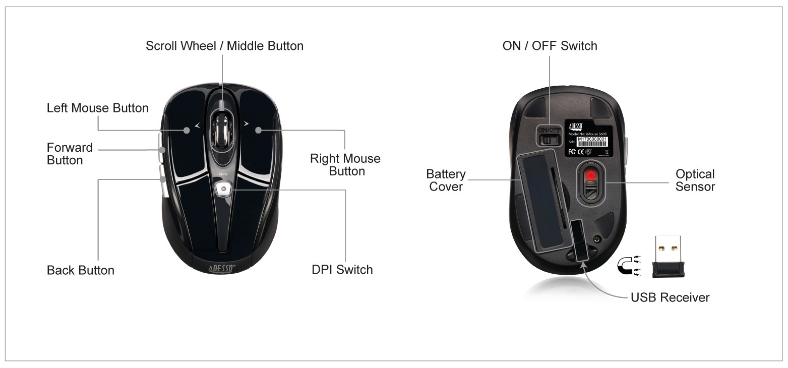 Use the battery-saving on/off power switch on mouse base to extend battery life and reduce the need to change batteries.