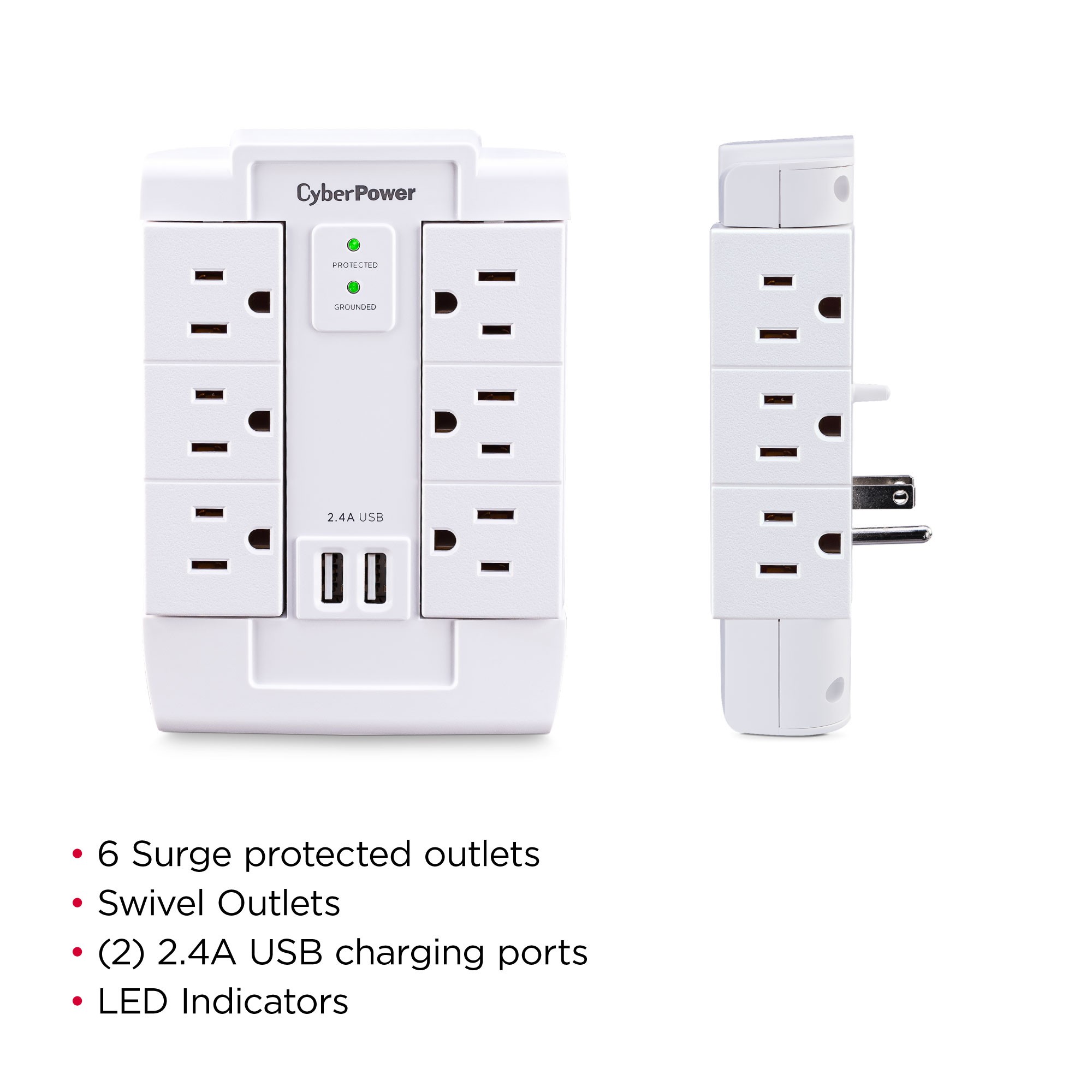 The unit has two LED indicators that let users know electronics are powered and protected.