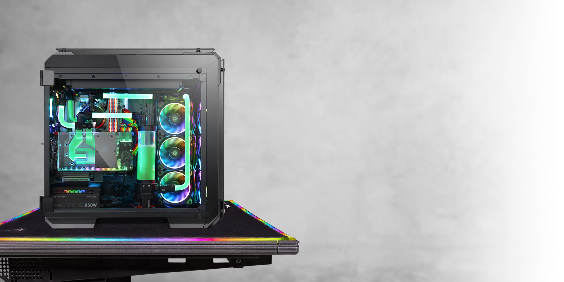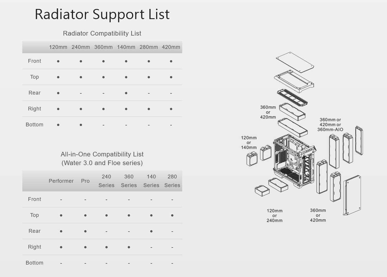 TG RGB Edition has plenty of space for advanced AIO/DIY liquid cooling components and supports all kinds of AIO liquid cooling solutions. It is able to hold up to triple 420mm custom liquid cooling radiators and up to 360mm AIO liquid coolers. Most importantly, the case design is optimized for providing users a quick way to access the drain valve without having to tilt the entire PC when draining coolant from the loop.