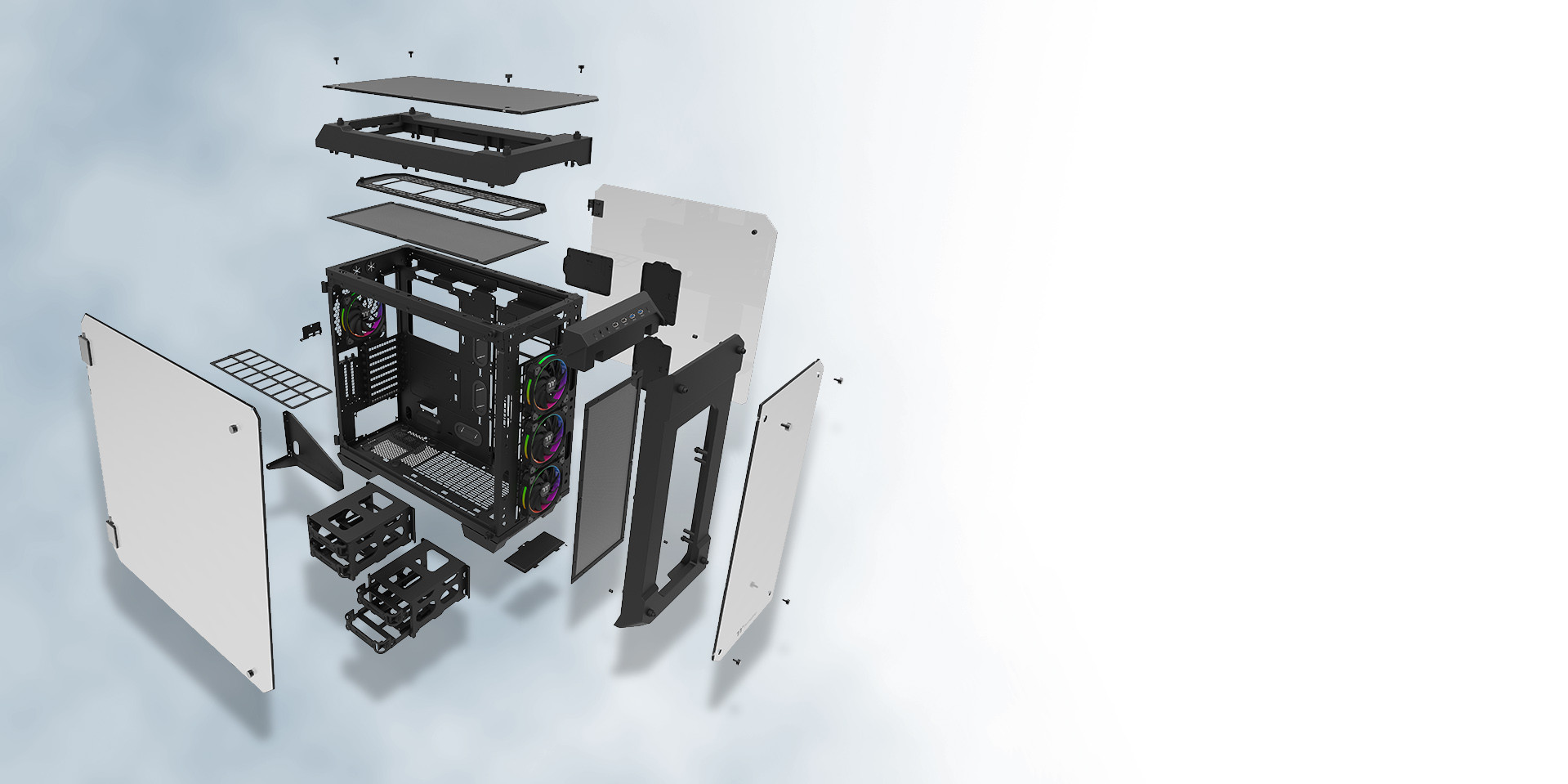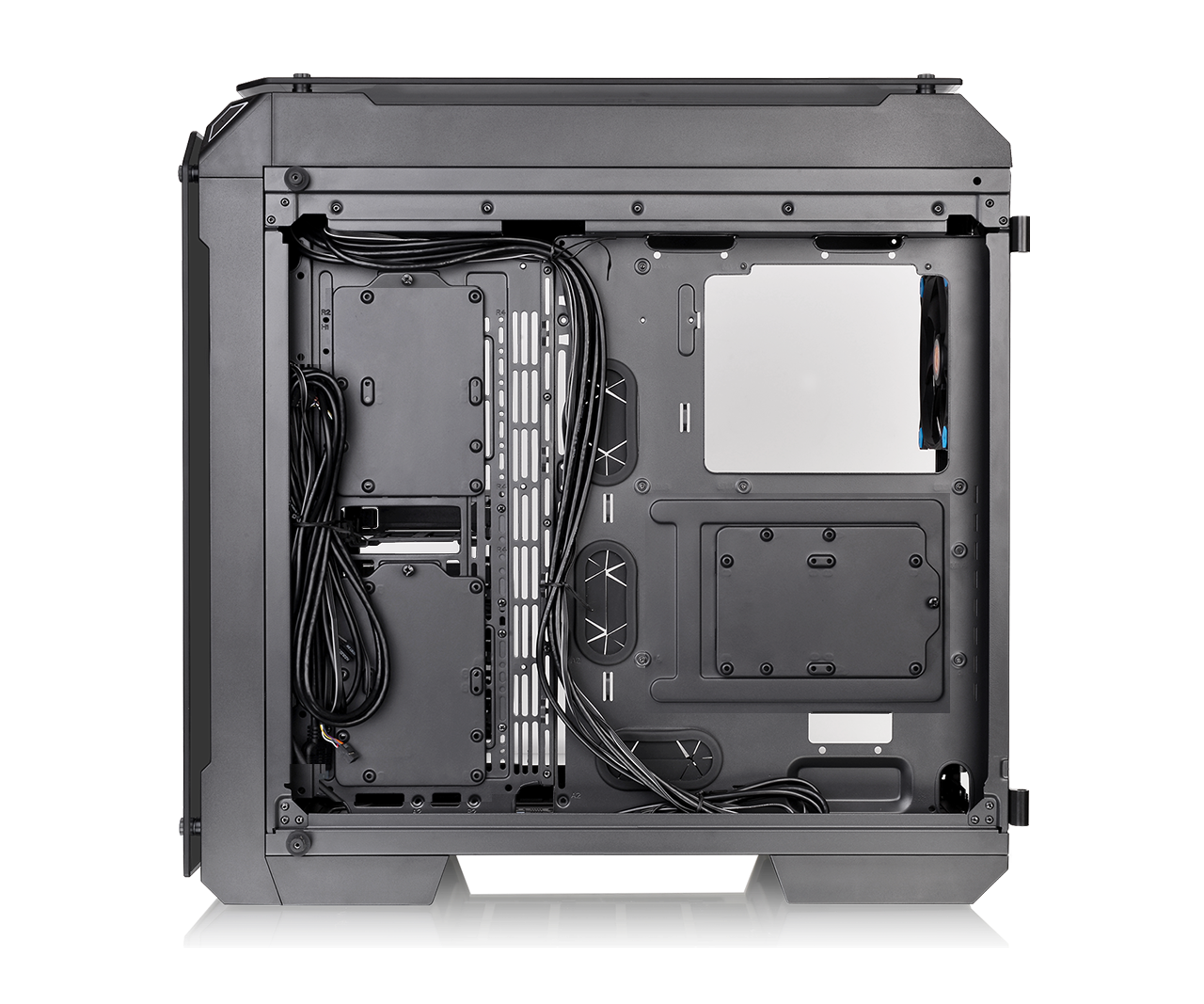 The chassis comes with four 5mm tempered glass panels, thicker and more scratch resistant when compared to standard acrylic. Swing Doors on either side allow user easy access to the internal components as well as the ability to remove the doors entirely for complete access to the internals. On top of this, the enlarged window design enables you to display and admire all your components in their full RGB glory.