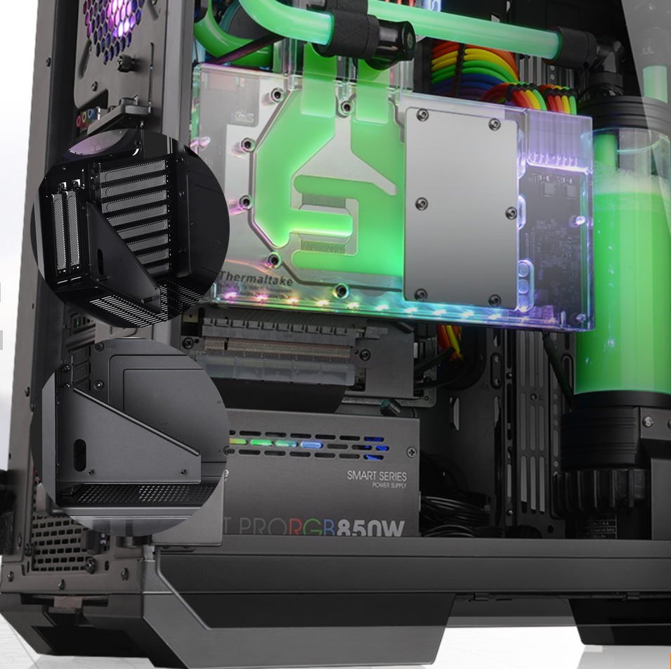 Specially designed with dual GPU placement options, the View 71 TG RGB has support for both vertical and horizontal graphics card layouts. With dual PCI-E slot designs (and an optional PCI-e riser cable), the included riser GPU support bracket can not only prevent the graphics card from sagging, but also help reduce the overall weight on the motherboard.