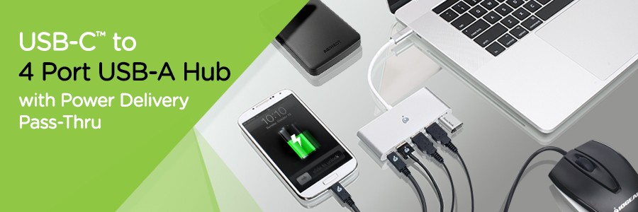 USB-C to 4-port USB-A Hub with Power Delivery Pass-Thru