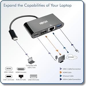 Newer tablets, laptops, Chromebook and MacBook notebooks, desktop computers and even smartphones often have USB Type-C ports, but come equipped with few others. This Tripp Lite docking station expands the functionality of the USB-C or Thunderbolt 3 port on your device and makes it compatible with your existing equipment.