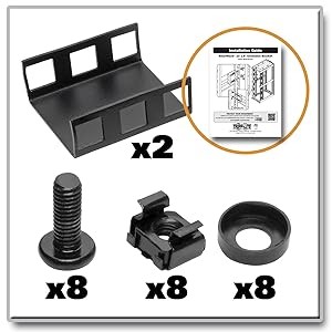 The B018-000-1P5 occupies 1U of rack space and attaches to the vertical mounting rails of EIA-standard 19-inch racks and rack enclosures. All mounting hardware is included. After the brackets are attached, you can mount your console or console KVM switch to the brackets. The brackets are made of cold-rolled steel with a black powder-coated finish to match most server racks.