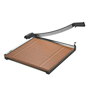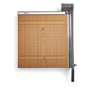 This paper trimmer features a 3/4-inch solid wood base that provides a sturdy platform for high-volume cutting. The X-ACTO Commercial Grade Guillotine Trimmer can cut 10 to 15 pages at a time. the guillotine arm features a Perpetual Edge self-sharpening system that keeps the hardened steel blade sharp for every cut.