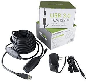The Plugable USB3-10M-D premium quality shielded USB 3.0 cable provides USB 3.0 performance (up to 640MB/sec) and power (up to 900mAh) up to 10m (32ft) away.