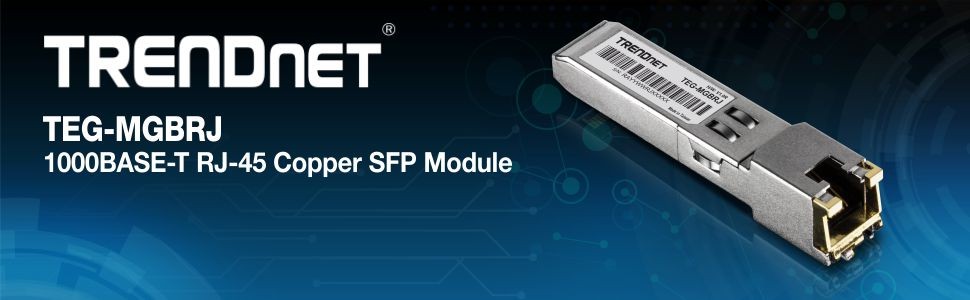 1000BASE-T RJ-45 copper SFP spans distances up to 328.1 ft (328 ft) and supports up to 1.25 Gbps. |