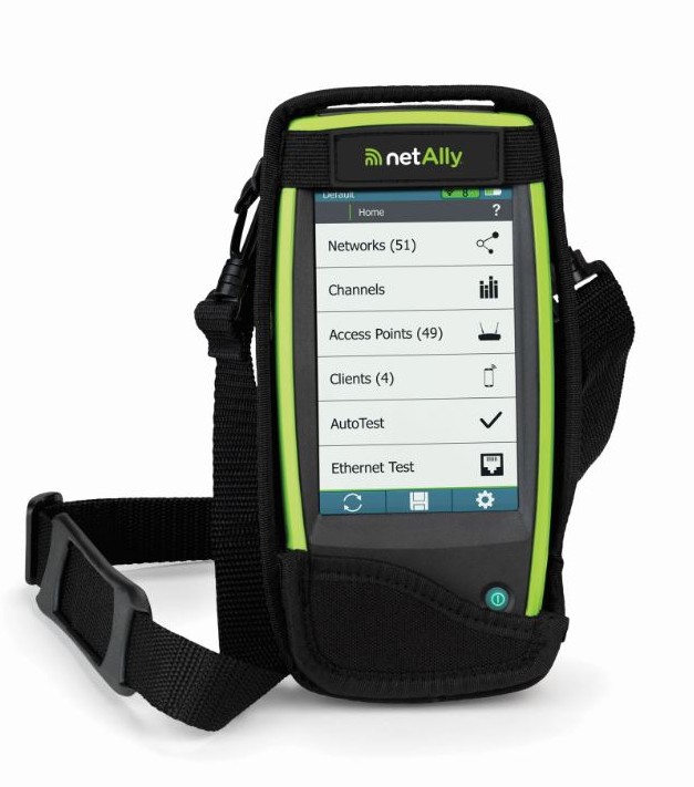 Field-use carrying holster makes troubleshooting on the go easier with a shoulder strap to allow hands-free usage without setting the tester down. Openings allow access to all applicable buttons and interfaces.