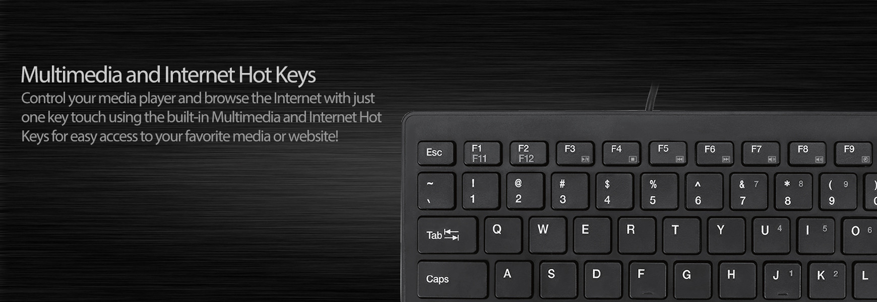 Control your media player and browse the internet with just one key touch using the built-in Multimedia and Internet Hot Keys for easy access to your favorite media or website!