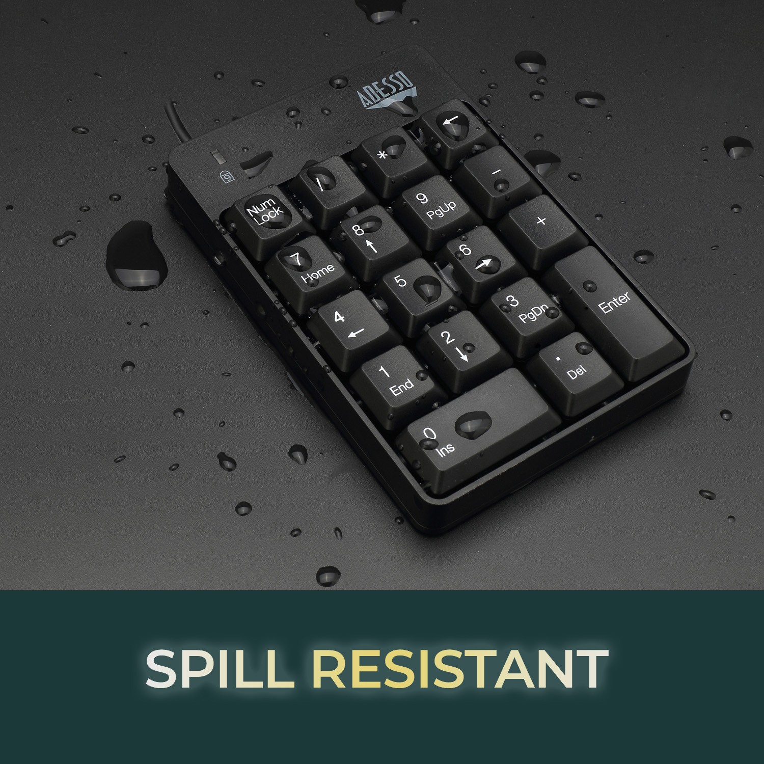 The keypad’s spill resistant design helps to prevent fluids from staying inside, which would otherwise cause damage to the keypad.