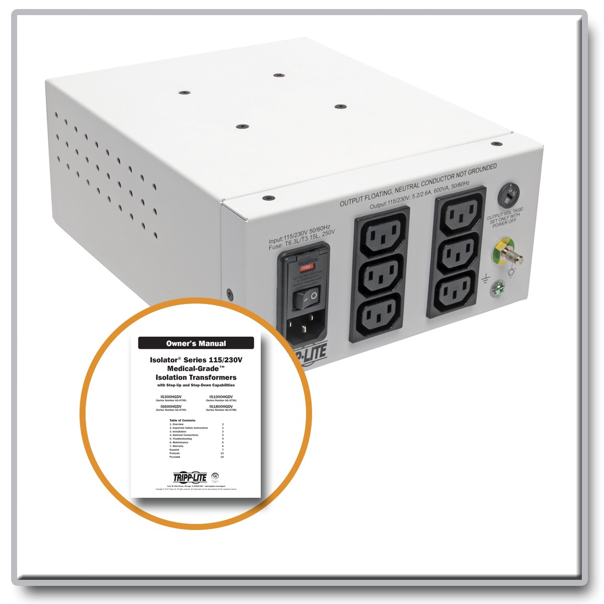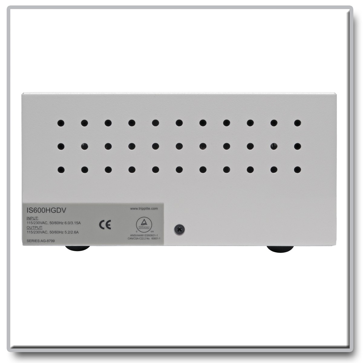 The IS600HGDV Medical-Grade™ Transformer, part of Tripp Lite’s acclaimed Isolator® series, with full CAN/ES/IEC/EN 60601-1 listing is ideal for protecting sensitive electronics, including diagnostic and lab equipment, in patient care vicinities. UL 60601-1 compliance is required for isolation transformers within patient care vicinities to avoid hazardous conditions and provide an optimally safe environment for patients, staff and visitors.