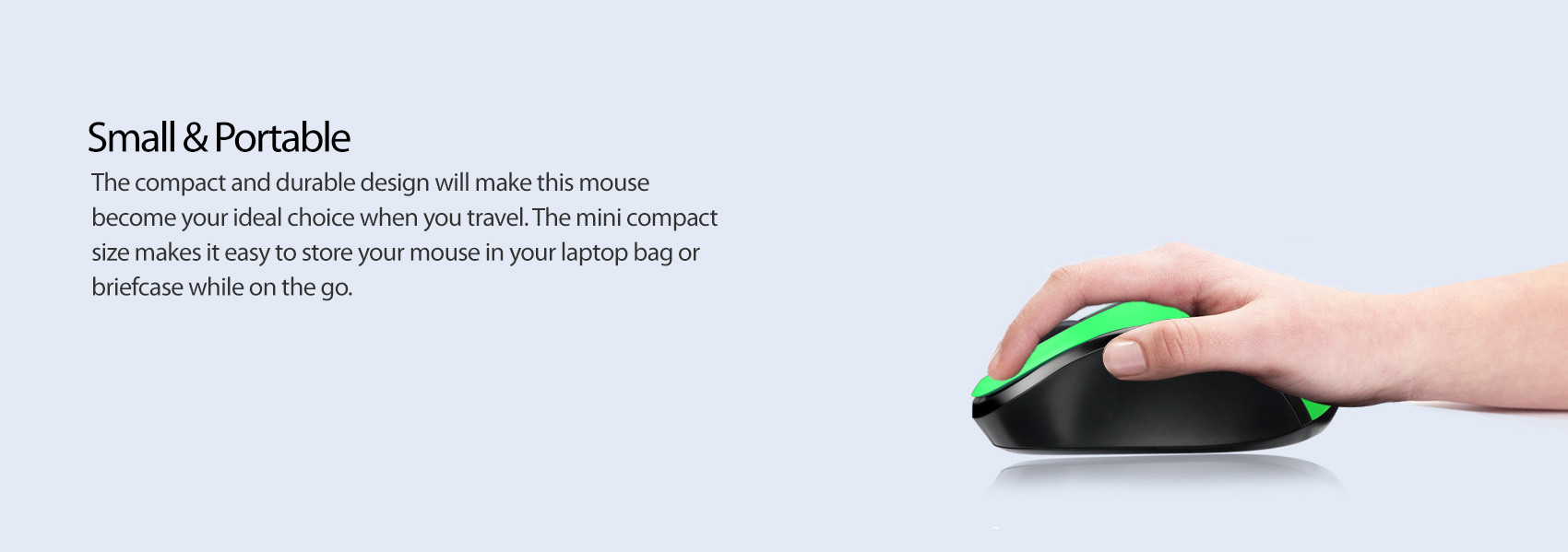 The compact and durable design will make this mouse become your ideal choice when you travel. The mini compact size makes it easy to store your mouse in your laptop bag or briefcase while on the go.