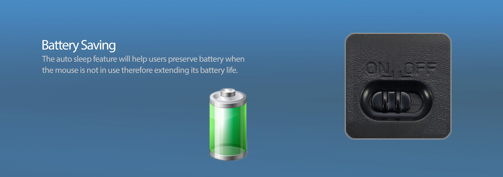 The auto sleep feature will help users preserve battery when the mouse is not in use therefore extending its battery life.