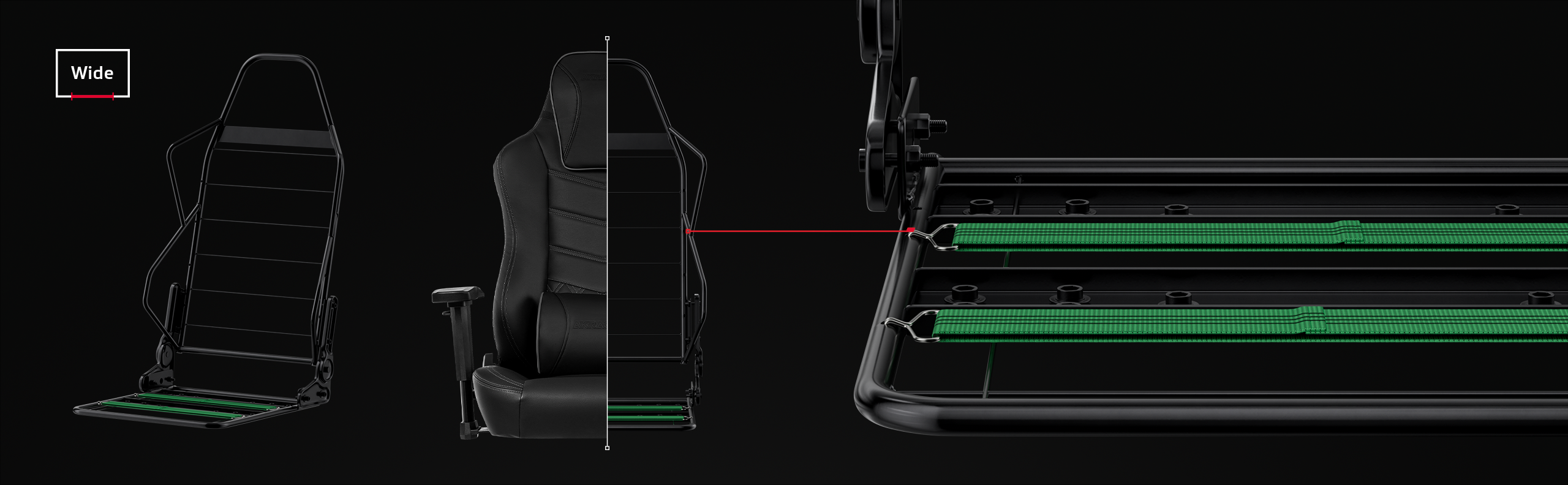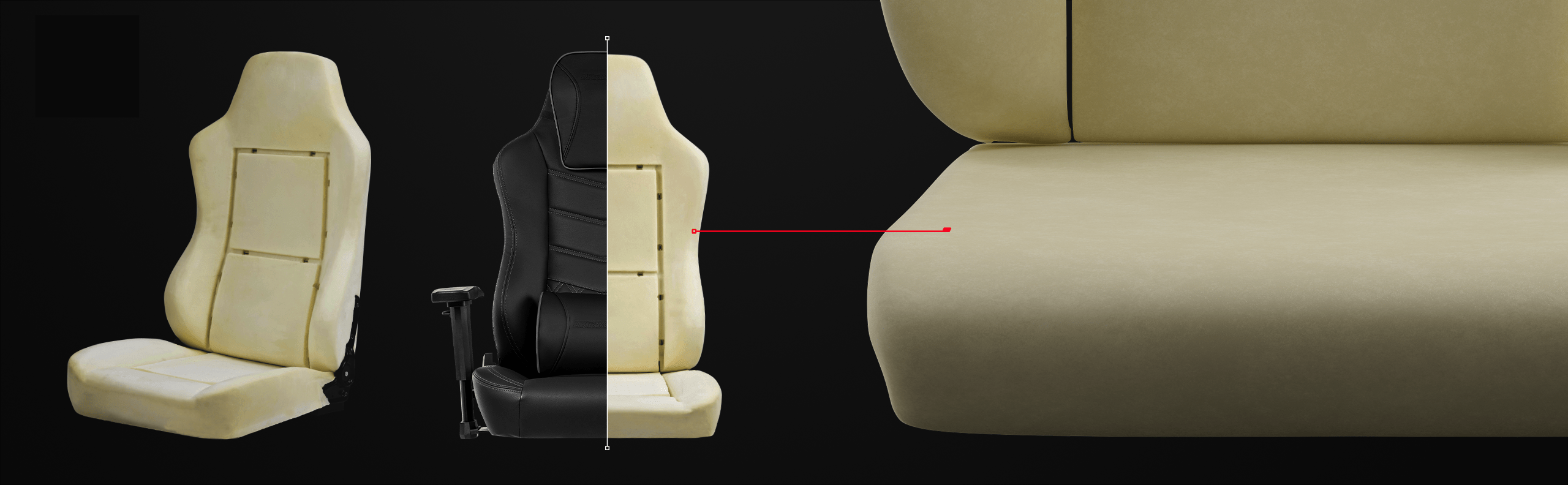Patented AKRacing design armrests are made of a special foam mix, providing cushioning and support to the arms and wrists.