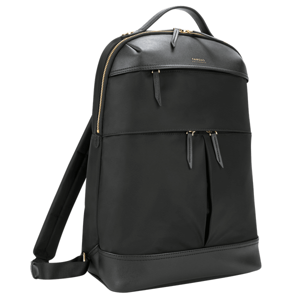 Whether you're looking for a traveling or work companion, the Targus Newport Backpack fits the bill. It wouldn’t be out of place strolling down brownstone-lined streets or beach neighborhoods, and doubles as a small backpack for your work accessories. Designed to fit slim laptops such as a 15" MacBook Pro® or tablets like a 12.9" iPad Pro® with ample space for clothing, the backpack also contains dedicate slim storage for travel essentials and everyday accessories. High-density water-repellent twill nylon and leatherette accents have been woven together to form a highly durable layer that helps protect it all with a luxurious sheen.