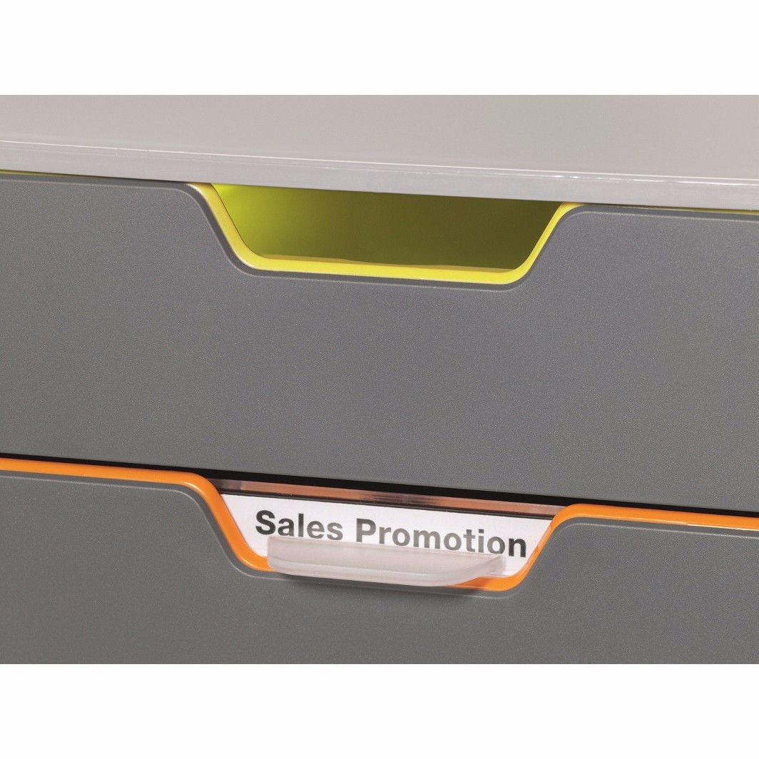 Drawer box comes with transparent labeling windows and EDP-printable, easy-to-exchange label inserts.