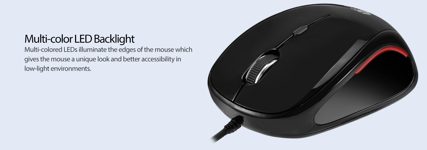 Multi-colored LEDs illuminate the edges of the mouse which gives the mouse a unique look and better accessibility in low-light environments.