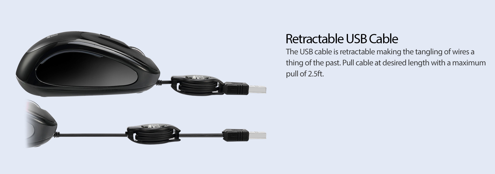 The USB cable is retractable making the tangling of wires a thing of the past. Pull cable at desired length with a maximum pull of 2.5ft.