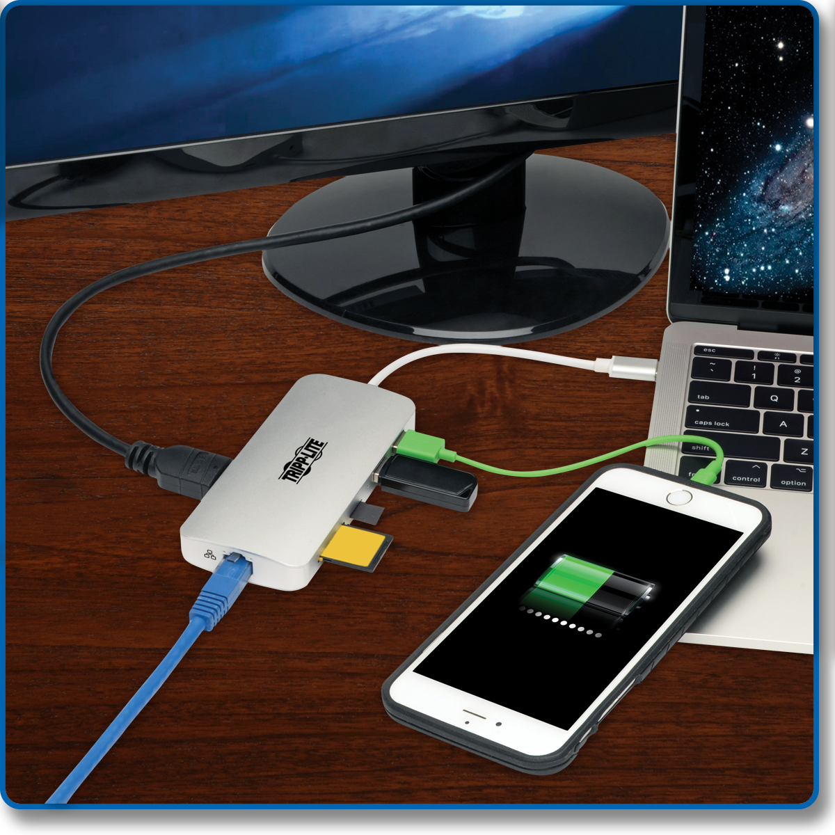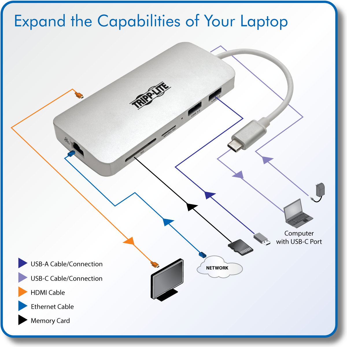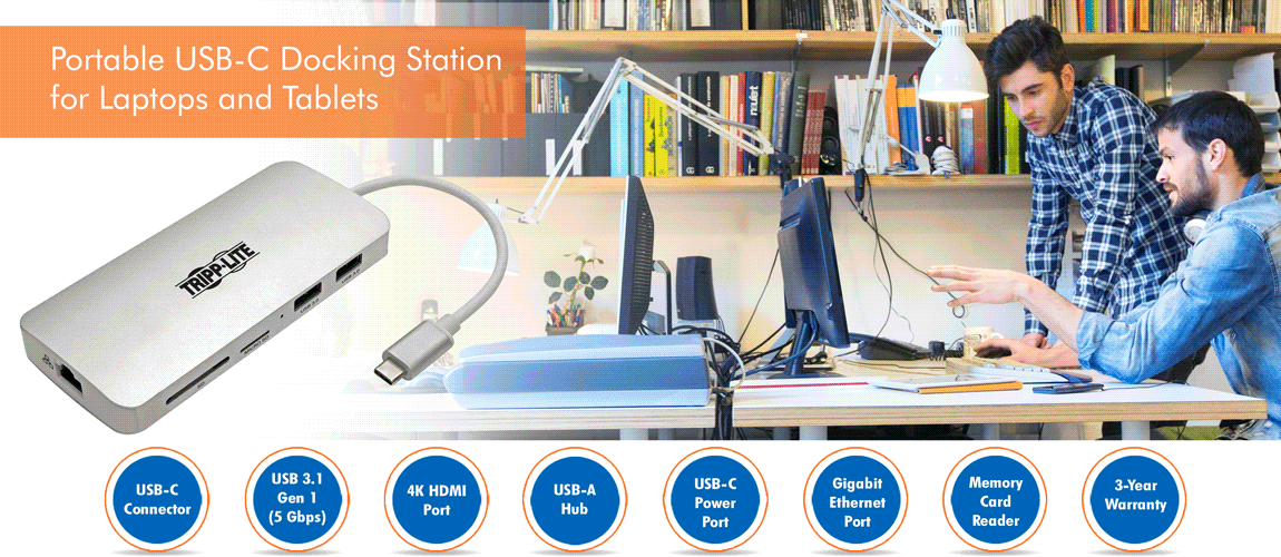 Newer tablets, laptops, Chromebook™ and MacBook® notebooks, desktop computers and even smartphones often have USB Type-C™ ports, but come equipped with few others. Using a single USB-C™ or Thunderbolt™ 3 port, this Tripp Lite docking station adds multiple connection options to your device.