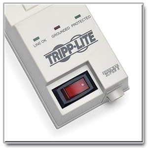 The SK6-6 features a unique design where the illuminated master switch and diagnostic LEDs are located at the opposite end from the power cord, making one-touch power control and monitoring of power and protection status easier than ever! Three diagnostic LEDs (LINE OK, GROUNDED and PROTECTED) show power and protection status at a glance, so you can recognize power problems before they affect your valuable equipment. The green LINE OK and red GROUNDED LEDs verify the SK6-6 is connected to a properly grounded wall outlet, while the green PROTECTED LED indicates that surge protection is available. If this green LED ever goes out, simply return the SK6-6 to Tripp Lite for a free replacement.