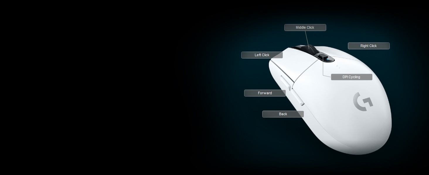 G305 sports two primary buttons plus middle click, DPI button and two side buttons. Program them all with custom gaming actions using Logitech G HUB software.