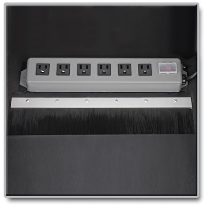 The SRQ24U’s front and rear doors lock securely to help prevent damage, tampering or theft. A convenient brush strip on the bottom panel allows easy cable routing, while keeping the inside of the cabinet free of dust and debris.