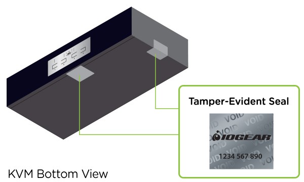 The IOGEAR Secure KVM Switch's hardware security is comprised of tamper-evident seals, active chassis intrusion detection, and tamper-proof hardware. Embedded software security allows administrators to grant controlled USB port access for keyboards, mice and other devices while ignoring commands from non-HIDs when switching between ports. The onboard software restricts mouse and hotkey commands while clearing the keyboard's buffer when switching ports while ensuring data travels isolated on each port preventing exposure.