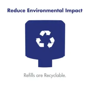 - SANITARY SEALED™ PET refill bottle with tear-off collar for easy recycling
